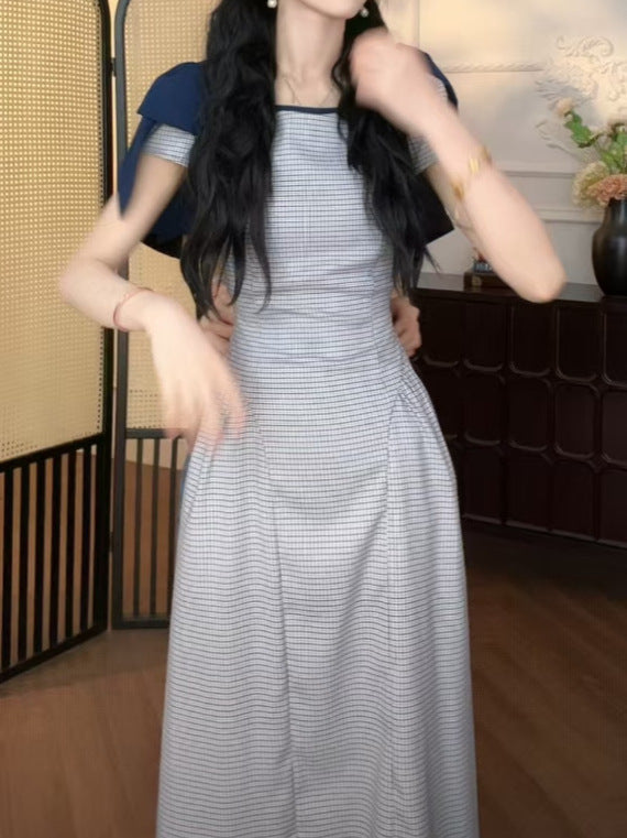 The classic checkered pattern, interwoven with light gray and dark colors, comes with a nostalgic filter, being retro yet fashionable. The waist - cinching cut precisely outlines the slender waist. The large skirt naturally spreads in an A - line, modifying the figure while showing dignity and elegance. It sways gracefully as you walk, suitable for various occasions: for daily outings, paired with flat shoes and a simple bag, it becomes a retro and artistic street scene; for workplace commuting, matched with high - heels and a suit jacket, it switches to a capable and mature style, easily handling work scenarios; when attending light social events, paired with exquisite accessories, it can show elegant charm, realizing the fashion experience of “one dress for multiple looks”.